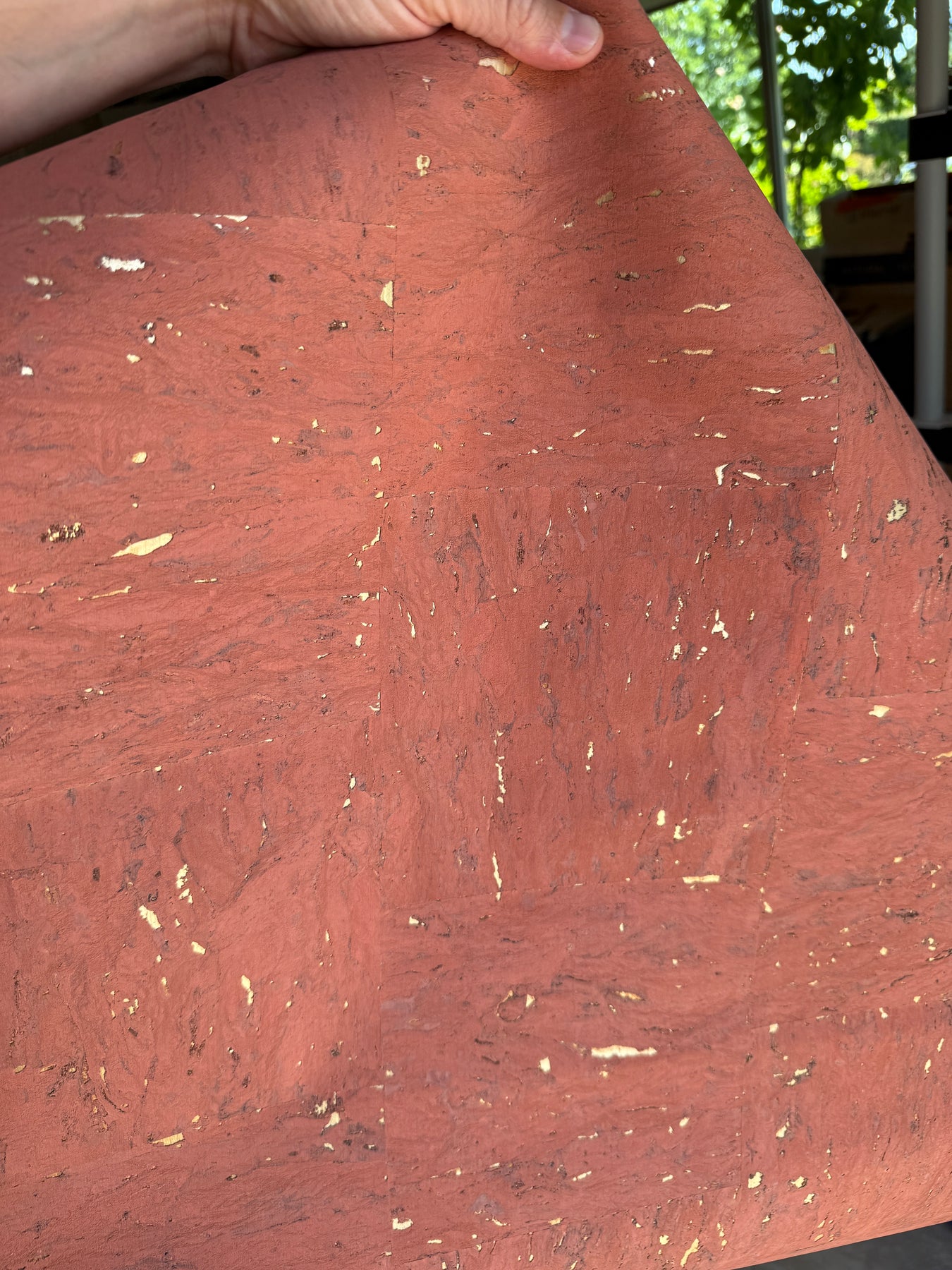 This natural cork wallpaper features a soft powder pink tone highlighted with delicate gold accents. The organic cork texture creates a unique, elegant pattern that brings warmth and sophistication to any space. Beyond its beauty, cork is an eco-friendly material that provides light acoustic and thermal insulation. Perfect for accent walls, living rooms, bedrooms, creative studios, and commercial interiors.